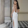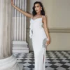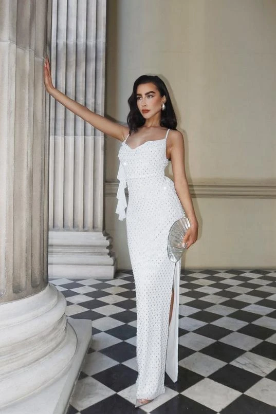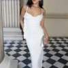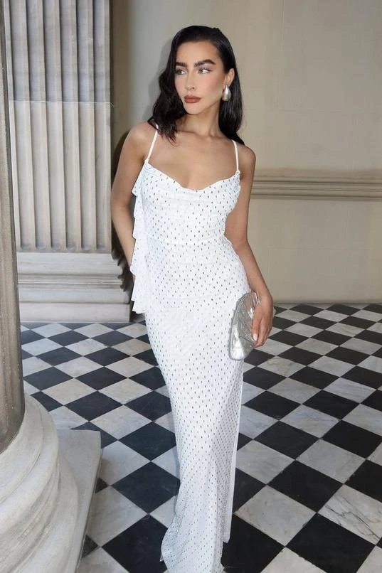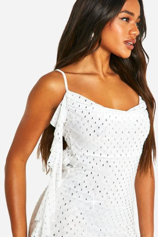 BOOHOO Hotfix Diamante Cowl Neck Frill Maxi Dress