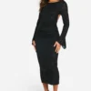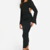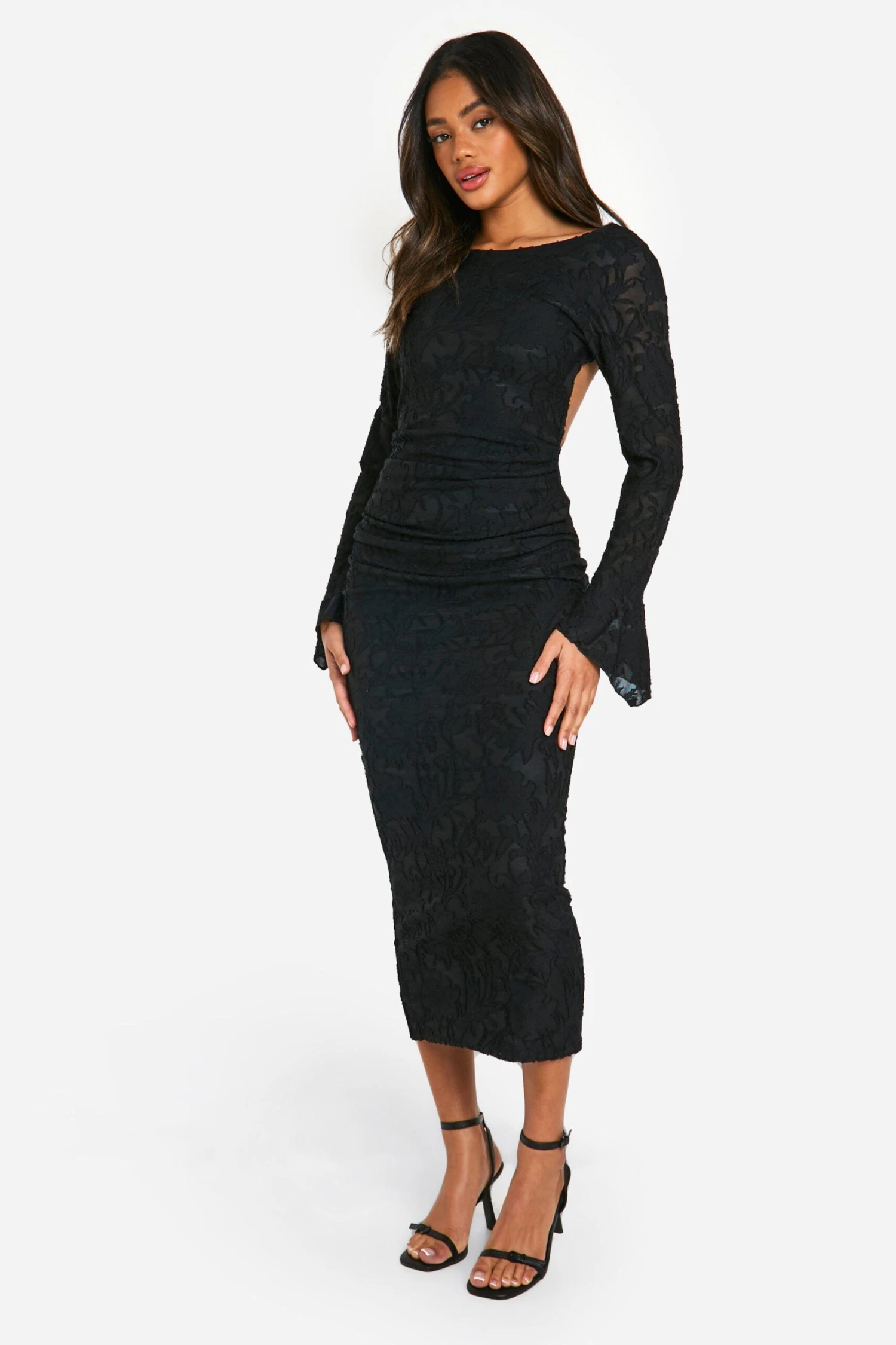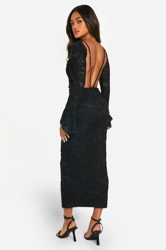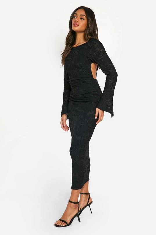 BOOHOO Jacquard Floral Flare Sleeve Midaxi Dress