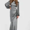BOOHOO Jacquard Floral Twist Strap Maxi Dress