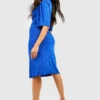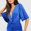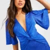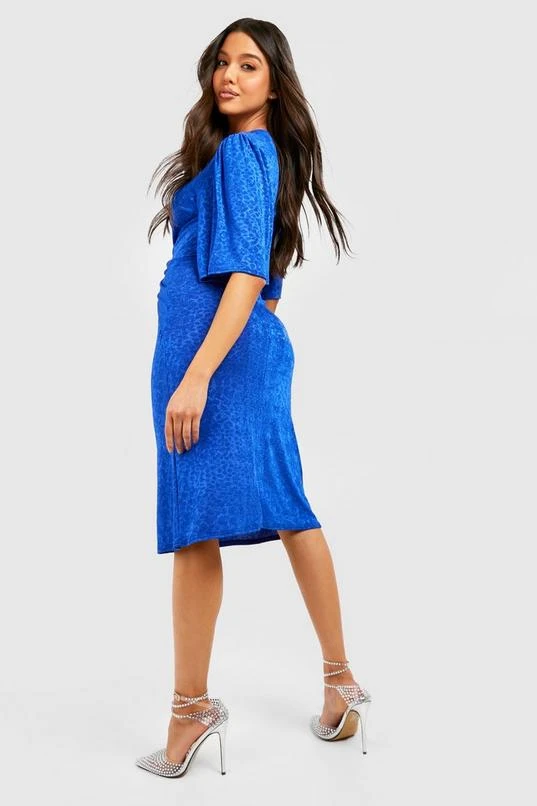 BOOHOO Jacquard Slinky Angel Sleeve Twist Front Midi Dress