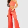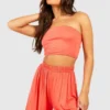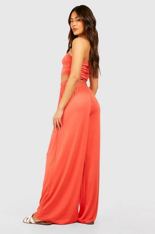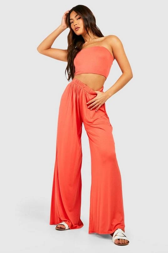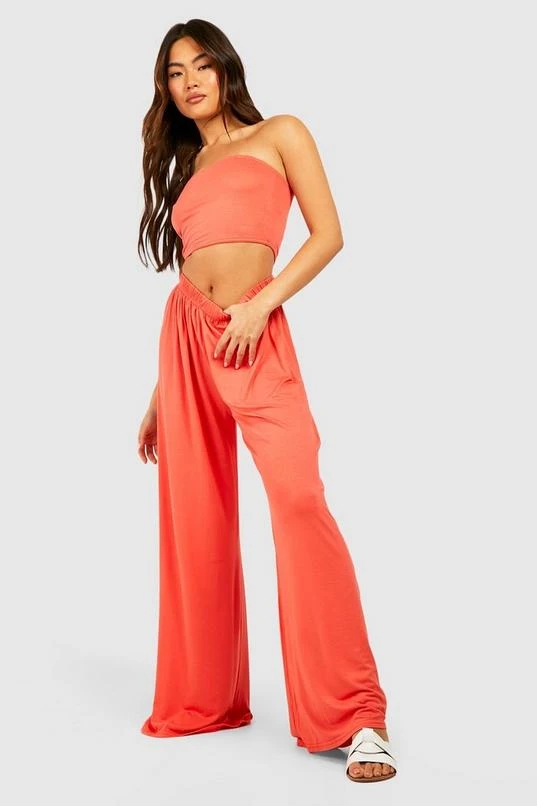 BOOHOO Jersey Knit Bandeau & Wide Leg Pants