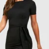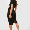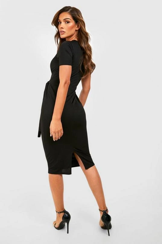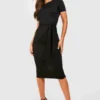 BOOHOO Jersey Knit Crepe Pleat Front Belted Midi Dress