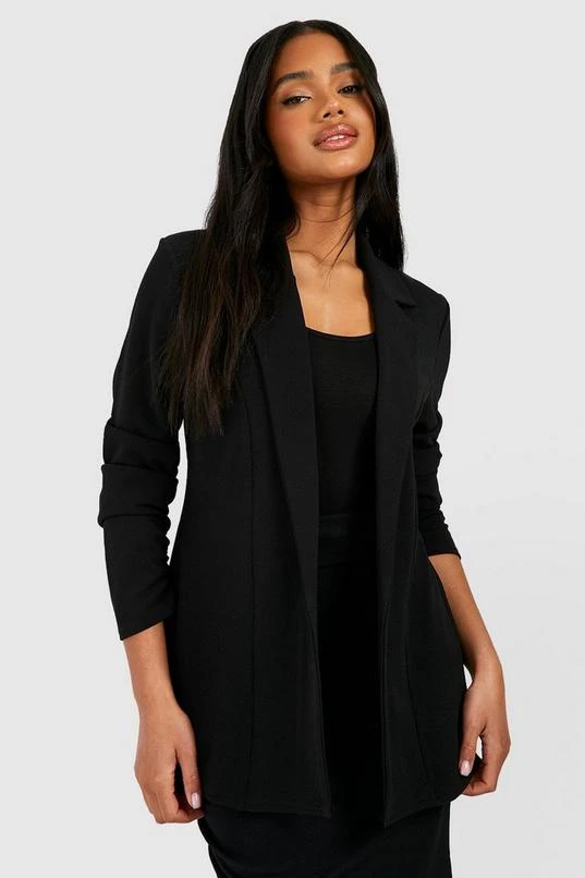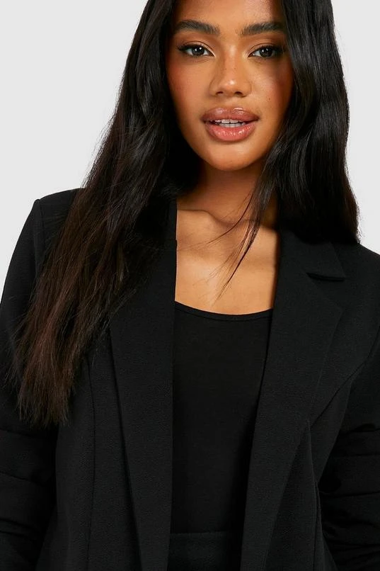 BOOHOO Jersey Knit Crepe Ruched Sleeve Relaxed Fit Blazer