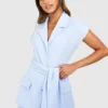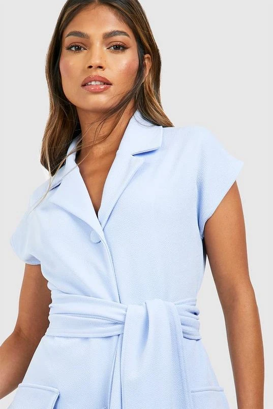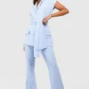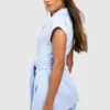 BOOHOO Jersey Knit Crepe Tie Waist Sleeveless Blazer