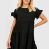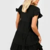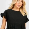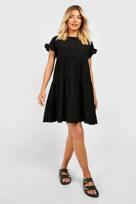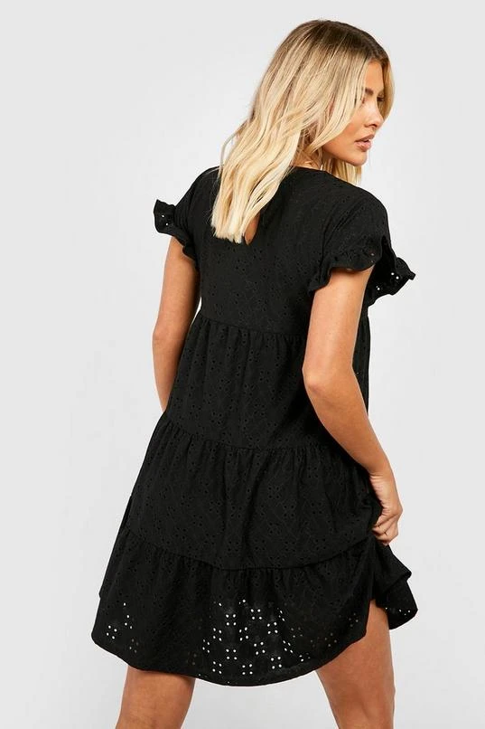BOOHOO Jersey Knit Eyelet Puff Sleeve Smock Dress