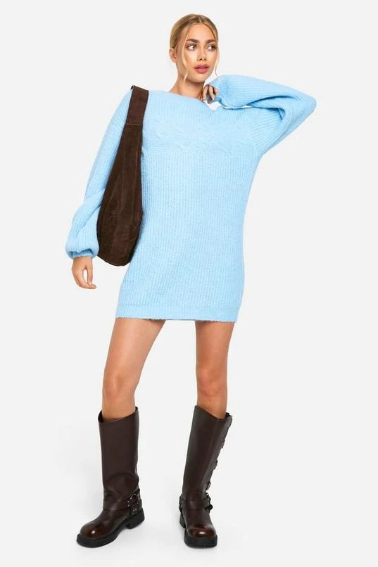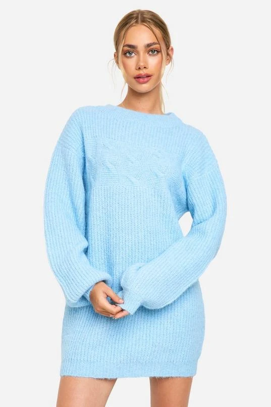 BOOHOO Knitted Crew Neck Mini Sweater Dress