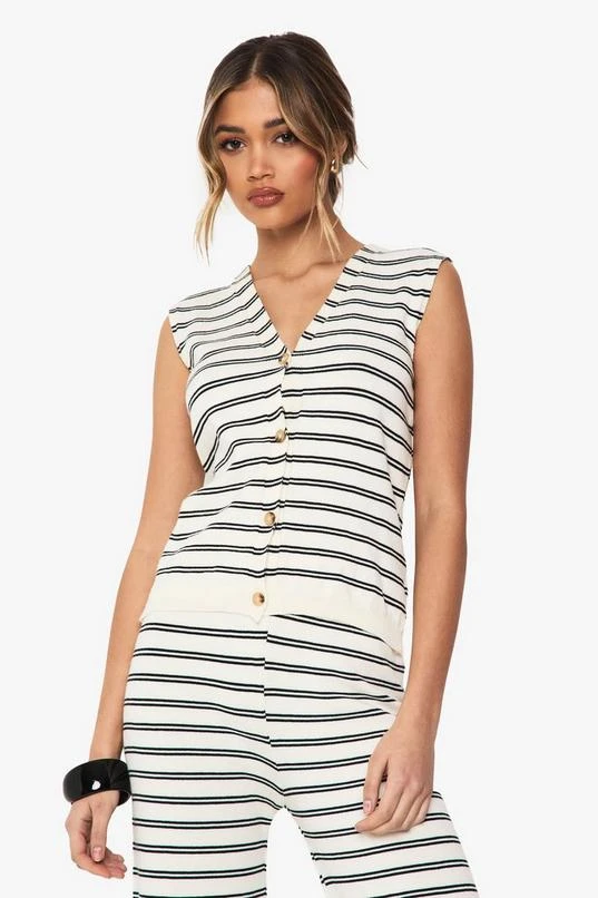 BOOHOO Knitted Super Soft Stripe Waistcoat