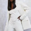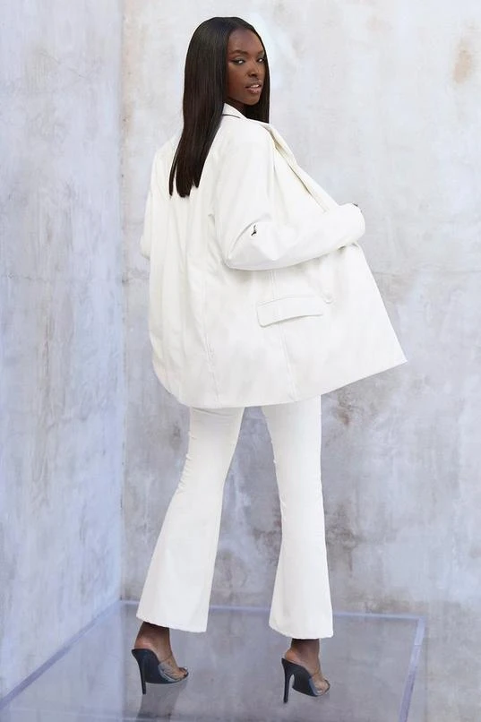 BOOHOO Kourtney Kardashian Barker Double Breasted Faux Leather Blazer