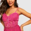 BOOHOO Lace Corset Detail Pleated Skater Dress