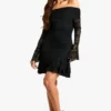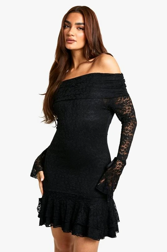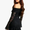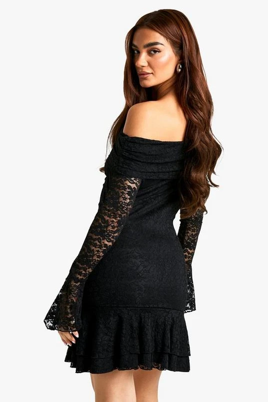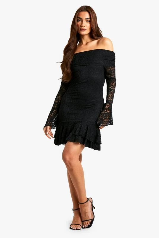 BOOHOO Lace Off Shoulder Flare Sleeve Mini Dress