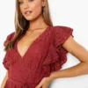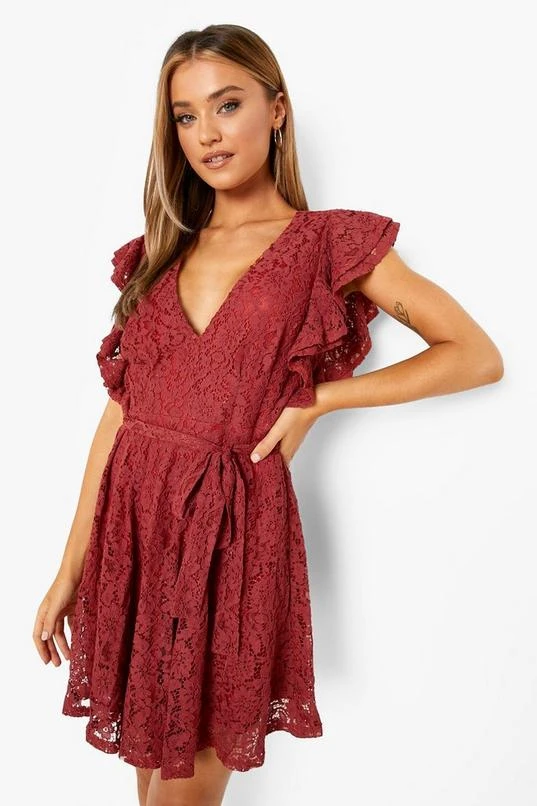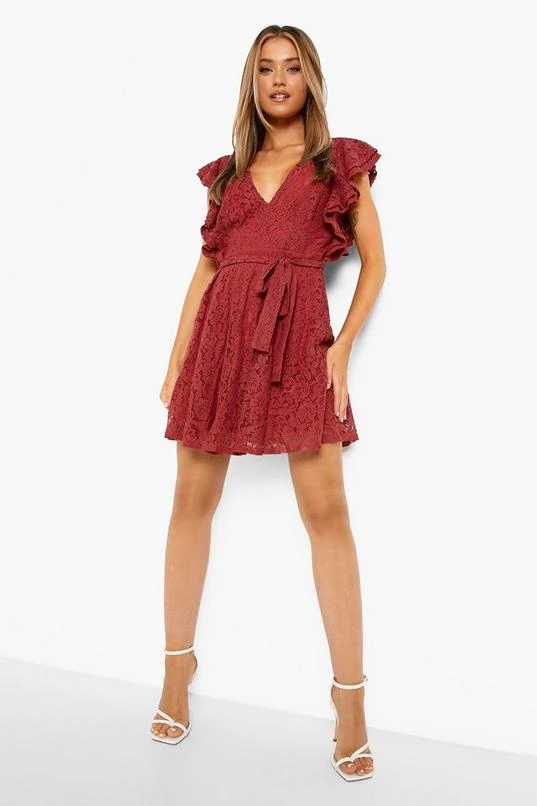 BOOHOO Lace Ruffle Sleeve Skater Dress