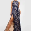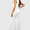 BOOHOO Lace Ruffle Split Maxi Dress