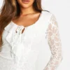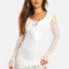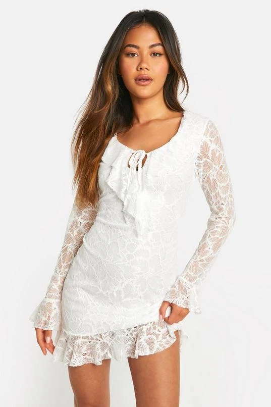 BOOHOO Lace Ruffle Tie Front Shift Dress