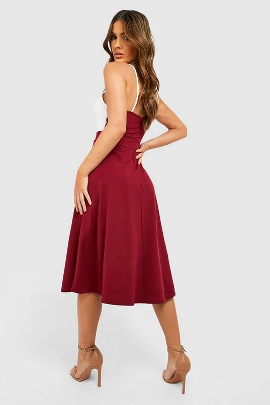 BOOHOO Lace Strappy Midi Skater Dress