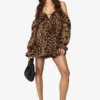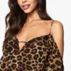 BOOHOO Leopard Chiffon Cold Shoulder Ruffle Playsuit