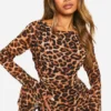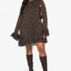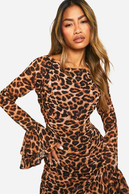 BOOHOO Leopard Chiffon Ruffle Mini Dress