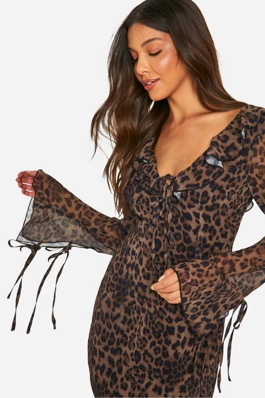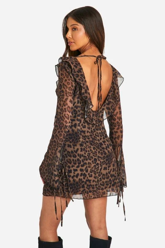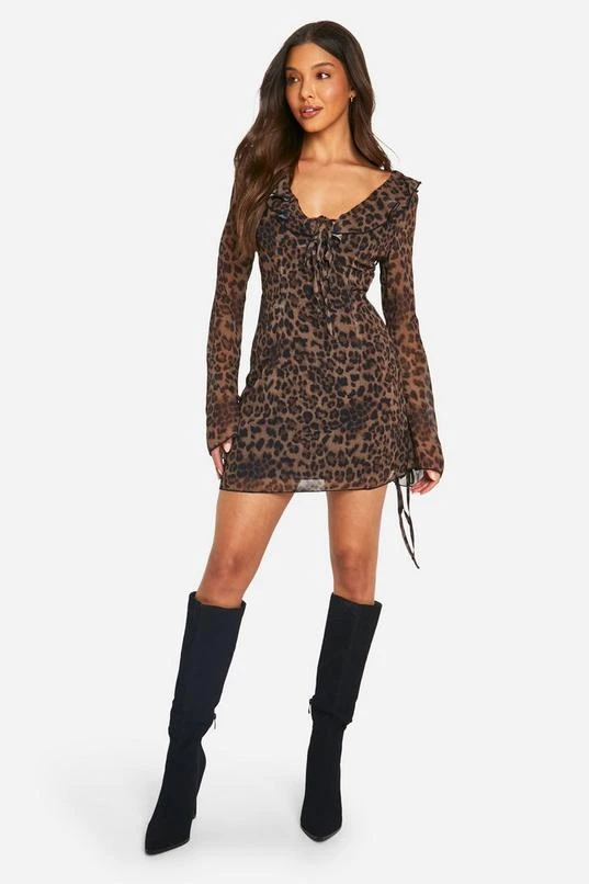 BOOHOO Leopard Chiffon Ruffle Shift Dress