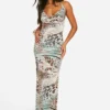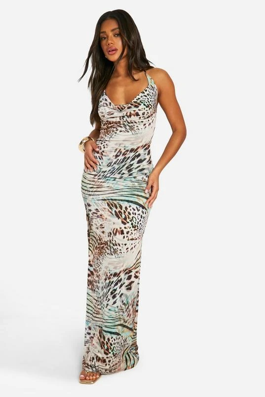 BOOHOO Leopard Cowl Neck Slinky Maxi Dress
