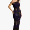 BOOHOO Leopard Floral Mesh Rope Detail Asymmetric Maxi Dress