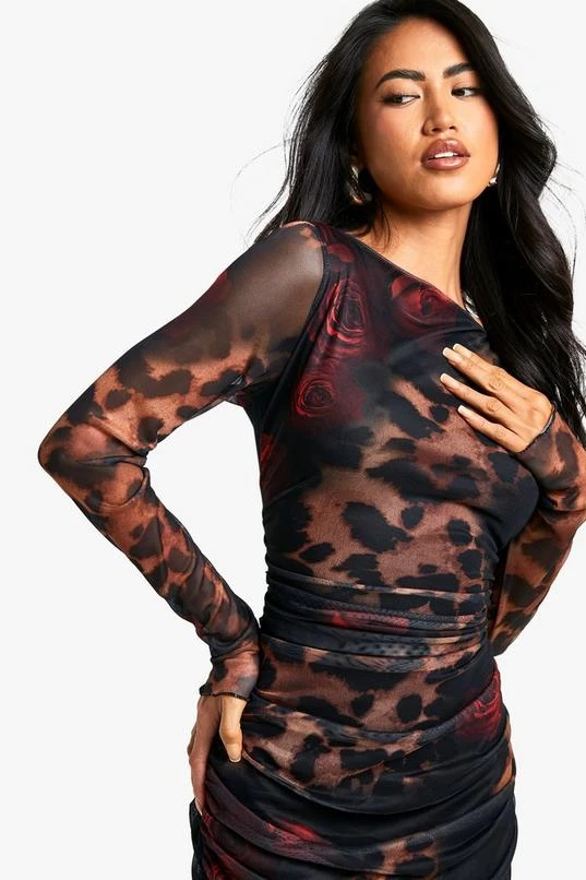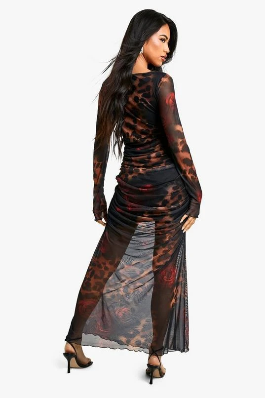BOOHOO Leopard Mesh Maxi Dress