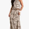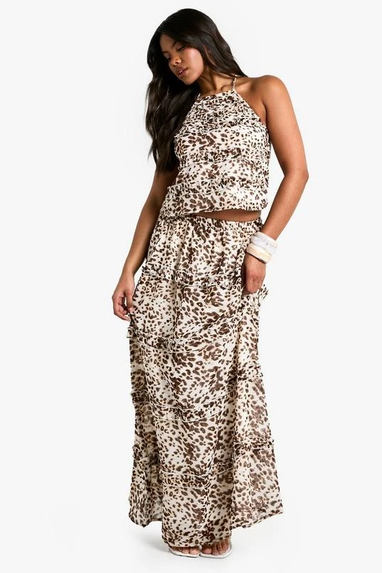BOOHOO Leopard Print Ruffle High Neck Woven Cami Top