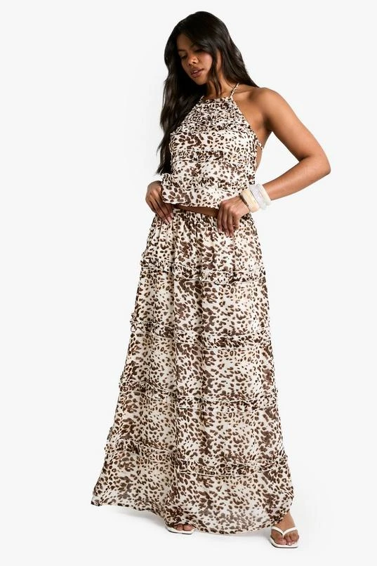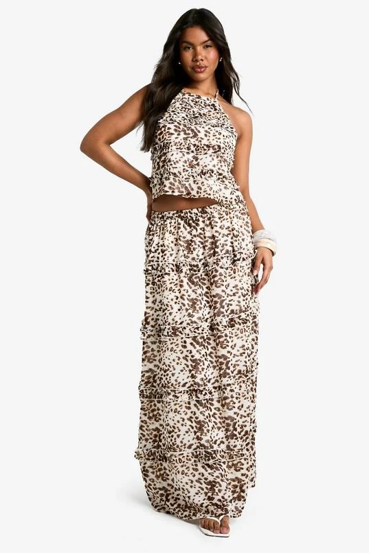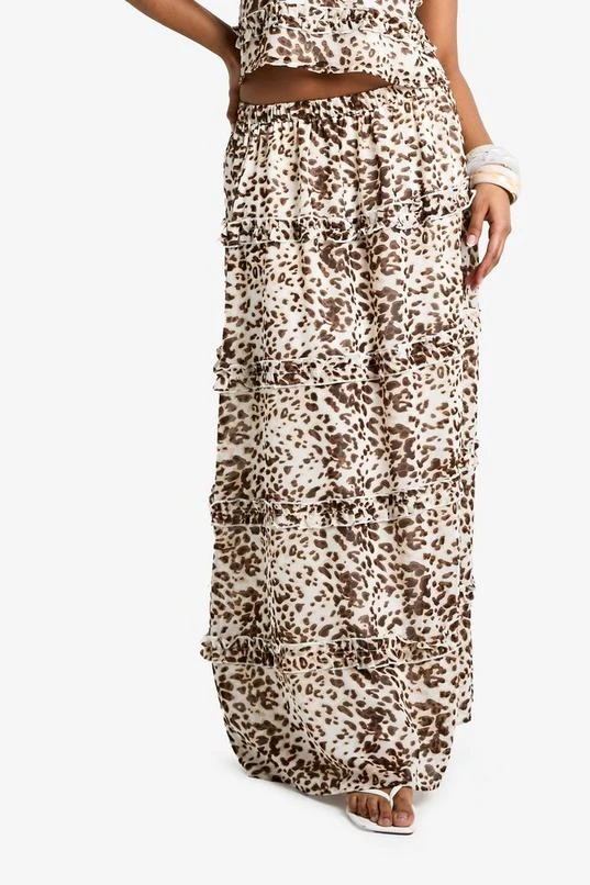 BOOHOO Leopard Print Ruffle Woven Maxi Skirt