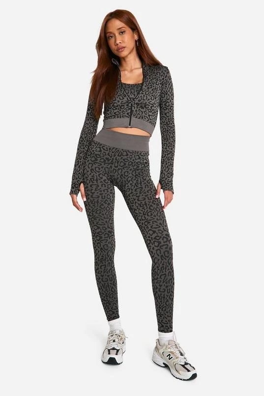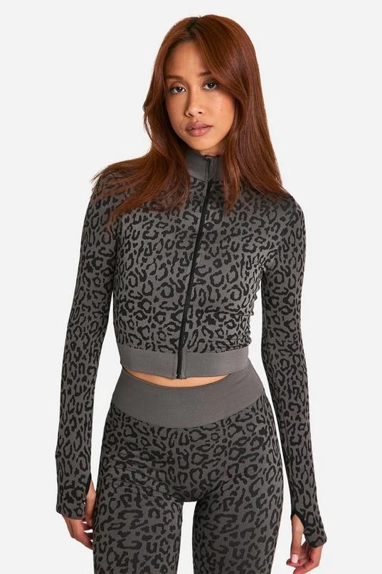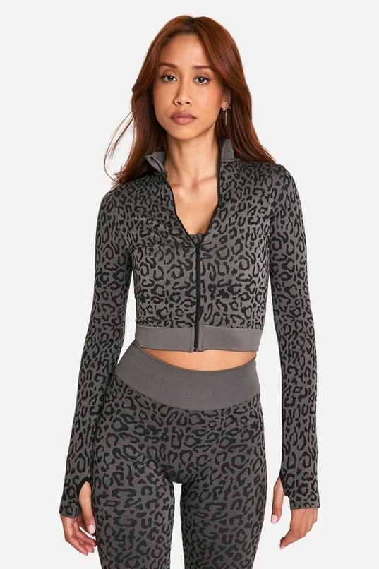 BOOHOO Leopard Print Seamless Zip Through Jacket