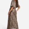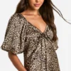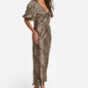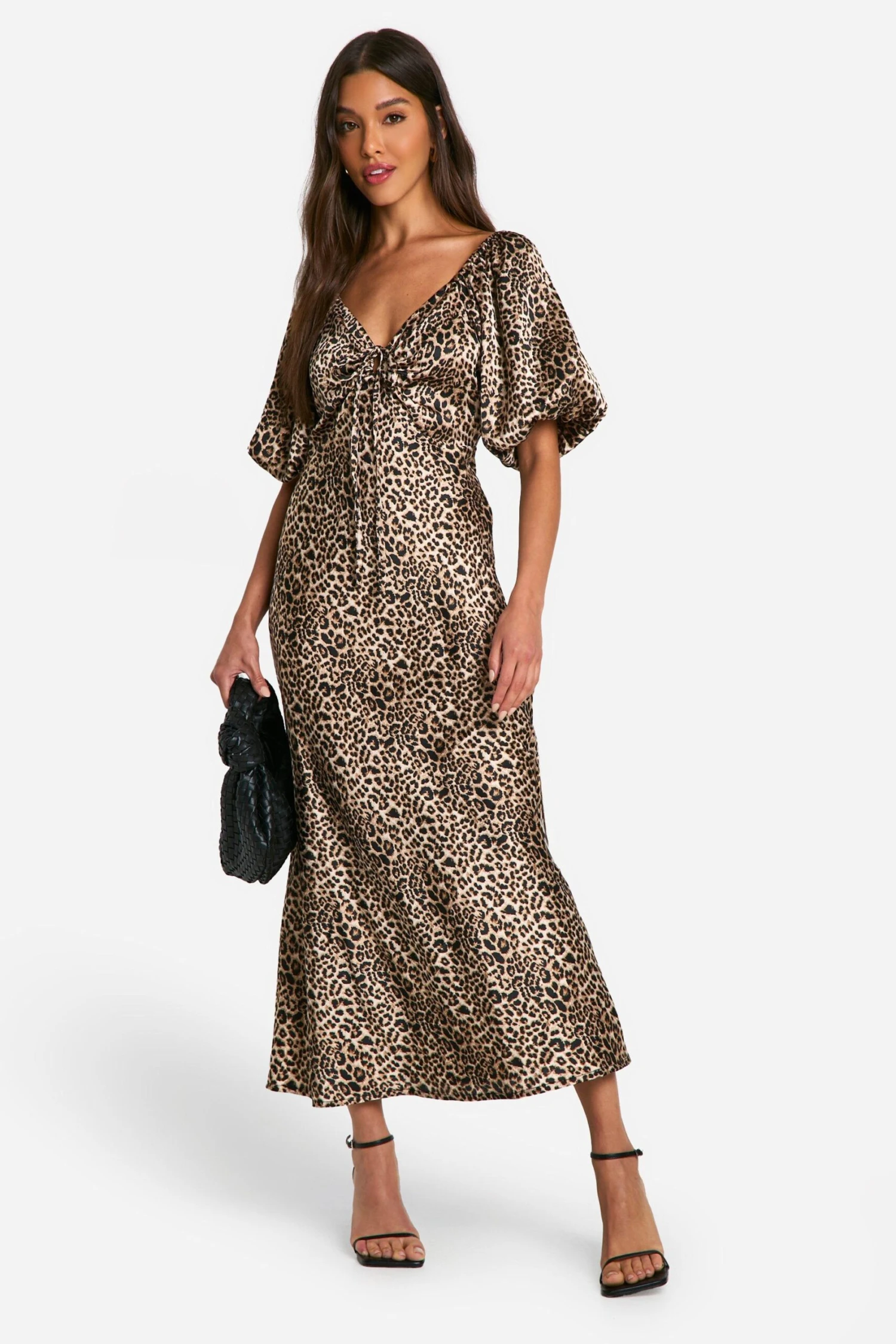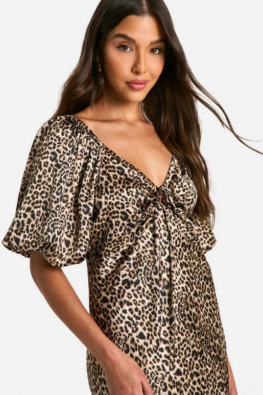 BOOHOO Leopard Puff Sleeve Midaxi Dress