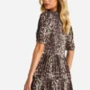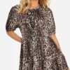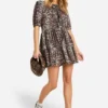 BOOHOO Leopard Rib Tie Front Smock Dress