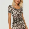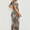 BOOHOO Leopard Scoop Neck Short Sleeve Maxi Dress