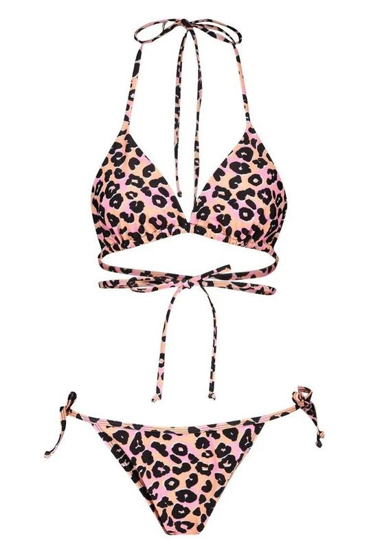 Cut shapes in this triangle bikini, the most popular style of bikini in women’s swimwear. This triangle string bikini is flattering for all shapes and sizes, featuring a triangle bikini top with padding inserts strung on thin straps and matching bottoms that tie at the side. With tie neck and back straps, you can style this triangle bikini in multiple ways, from halter-neck and criss-cross to bandeau and cross neck – the choice is yours.