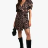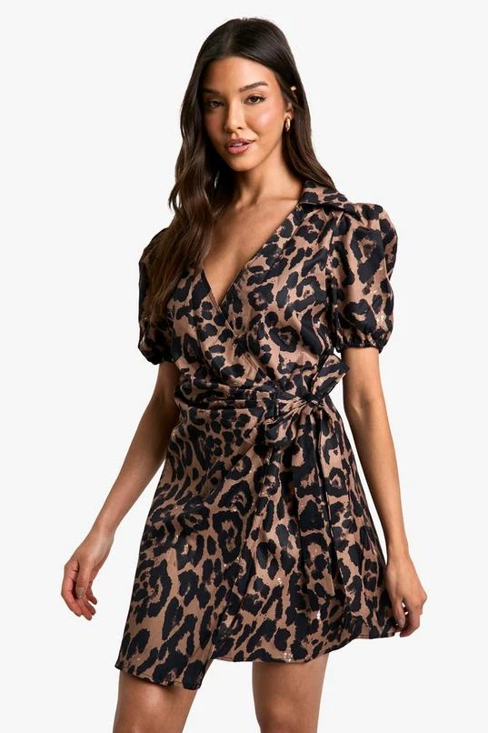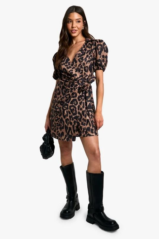 BOOHOO Leopard Wrap Smock Dress