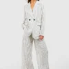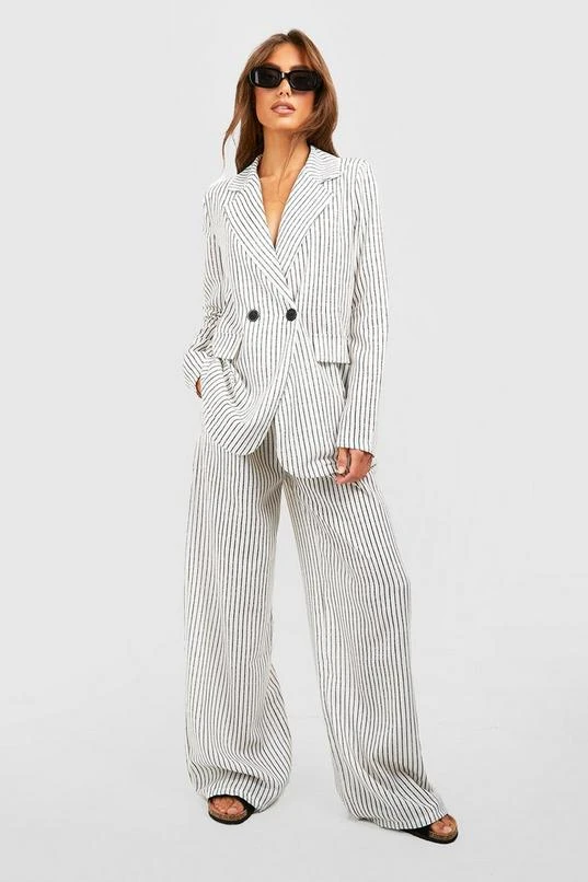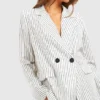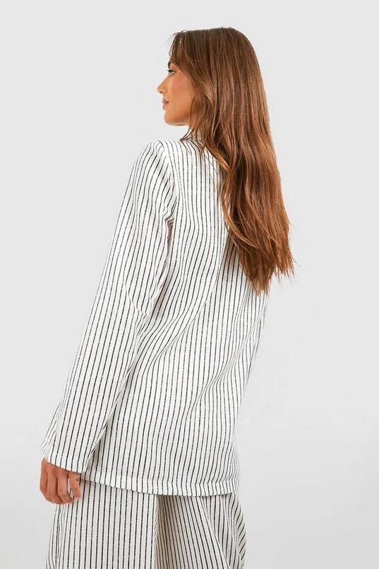 BOOHOO Lightweight Linen Look Striped Contrast Button Blazer