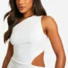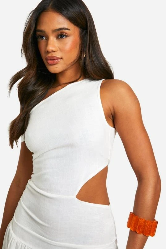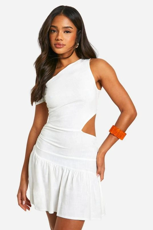 BOOHOO Linen Look Cold Shoulder Cut Out Mini Dress