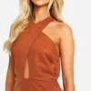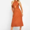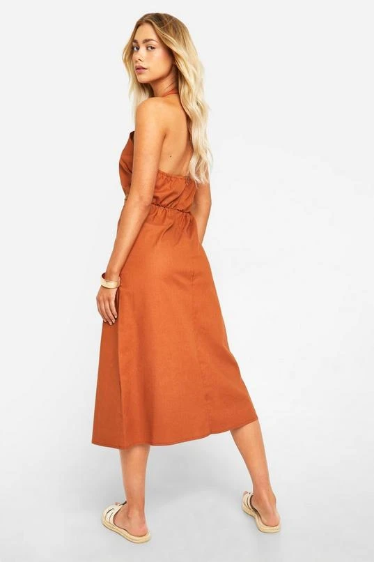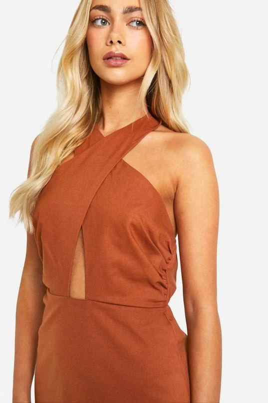 BOOHOO Linen Look Cross Over Midi Dress