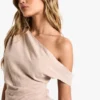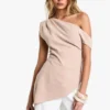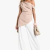 BOOHOO Linen Look Drape One Shoulder Asymmetric Top