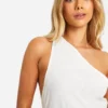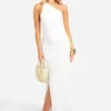 BOOHOO Linen Look One Shoulder Maxi Dress