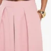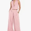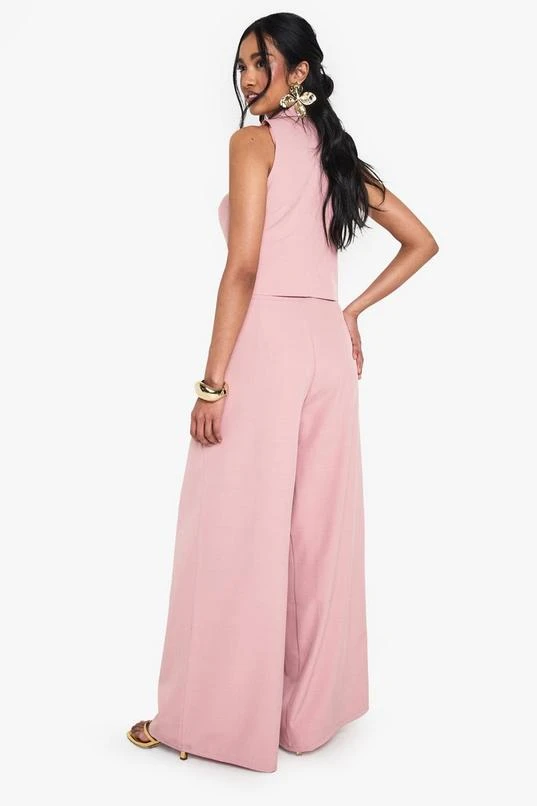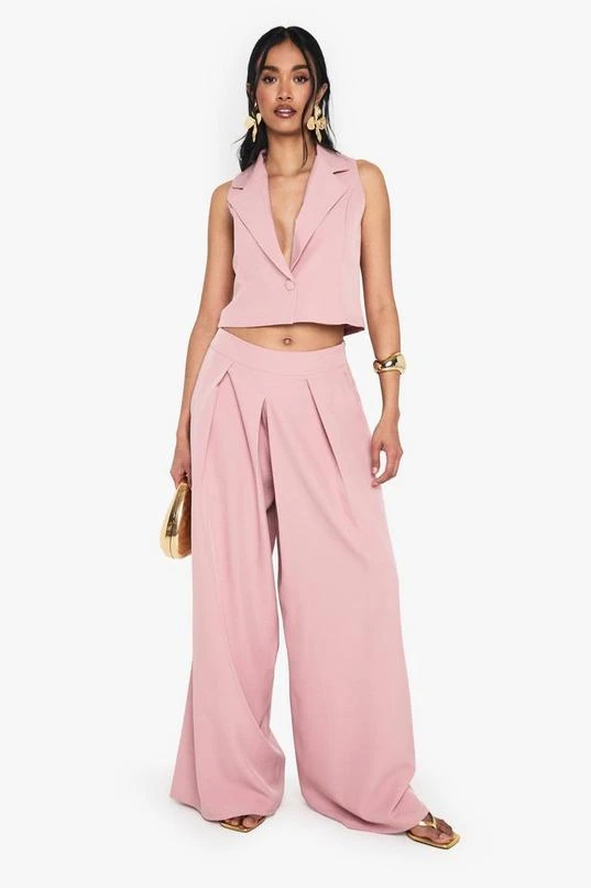 BOOHOO Linen Look Pleat Front Wide Leg Tailored Trousers