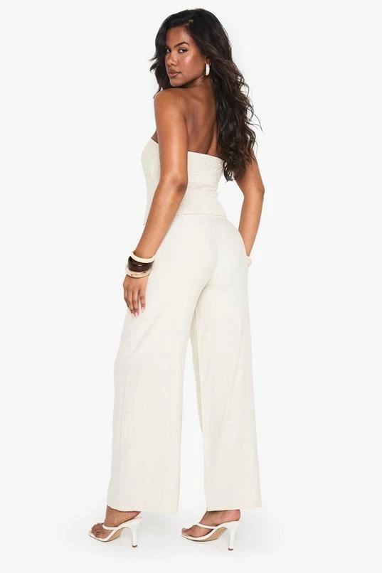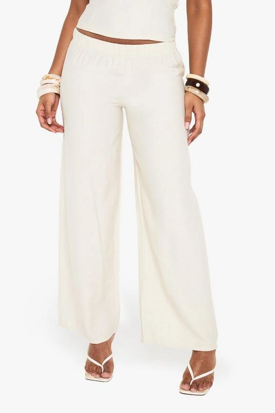BOOHOO Linen Look Slouchy Wide Leg Trouser