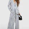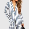 BOOHOO Linen Look Striped Contrast Button Blazer
