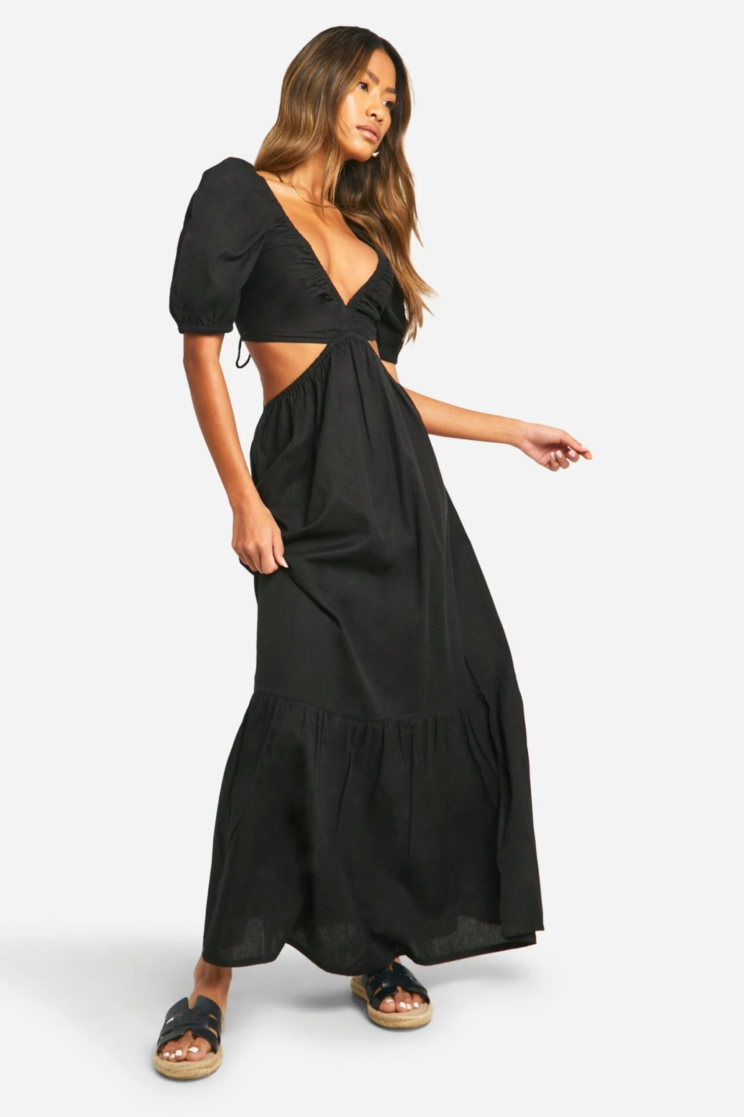 Be the first to review “BOOHOO Linen Look Tie Back Puff Sleeve Maxi Dress” Cancel reply