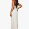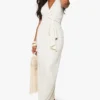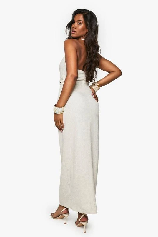 BOOHOO Linen Look Twist Neck Halterneck Maxi Dress