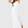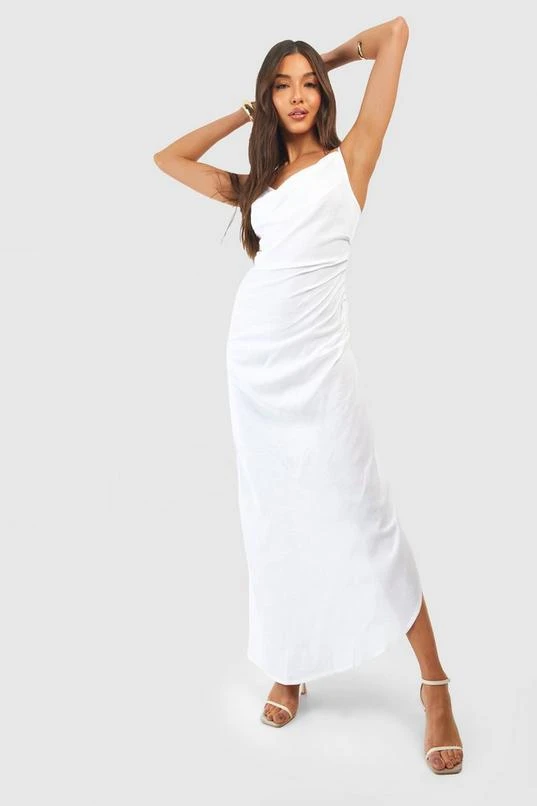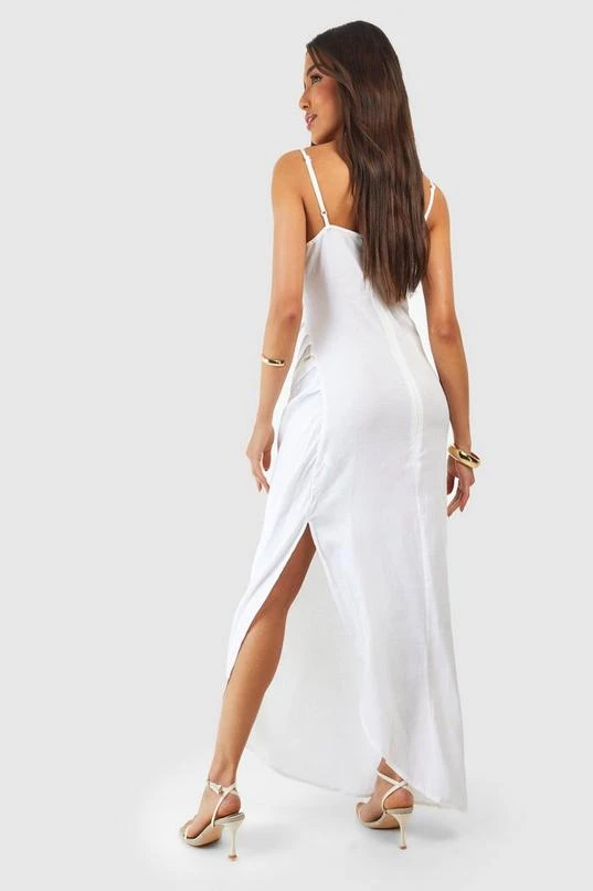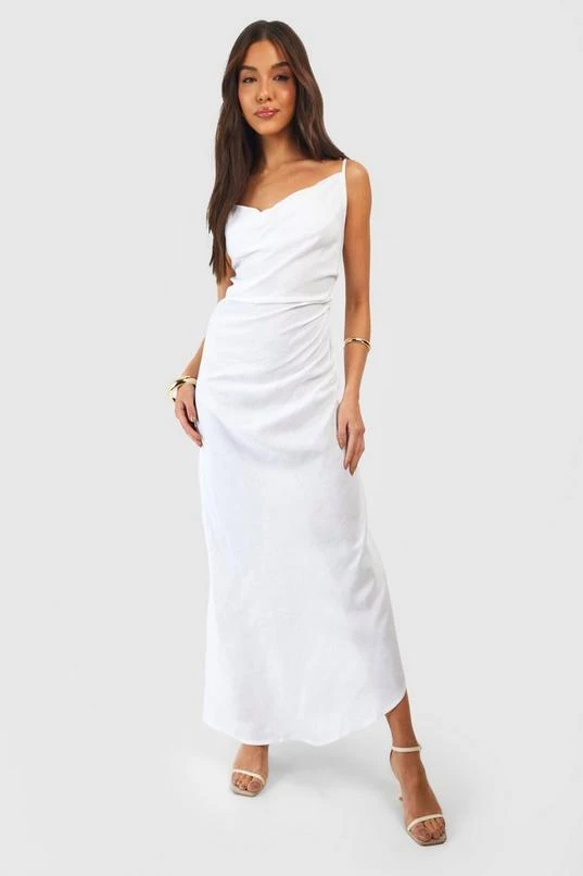 BOOHOO Linen Strappy Draped Midi Dress