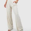BOOHOO Linen Textured Straight Leg Trousers