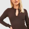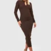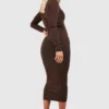 BOOHOO Long Sleeve Button Detail Midi Dress