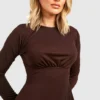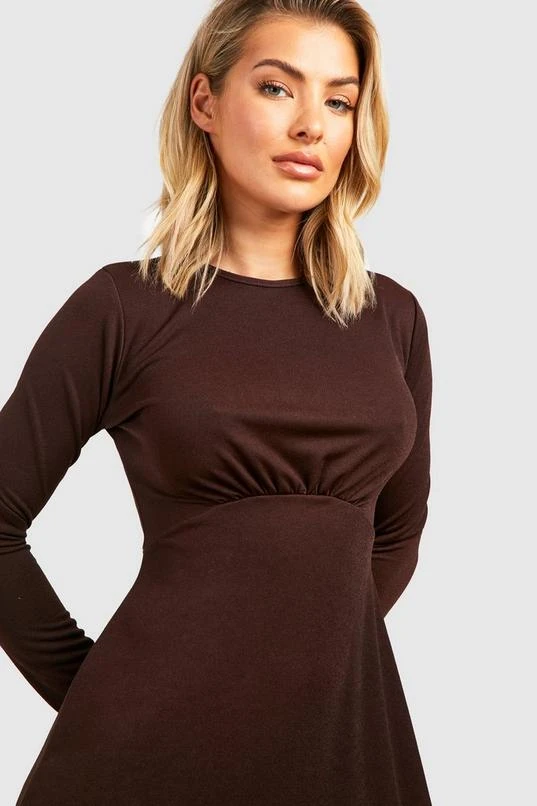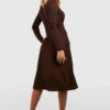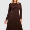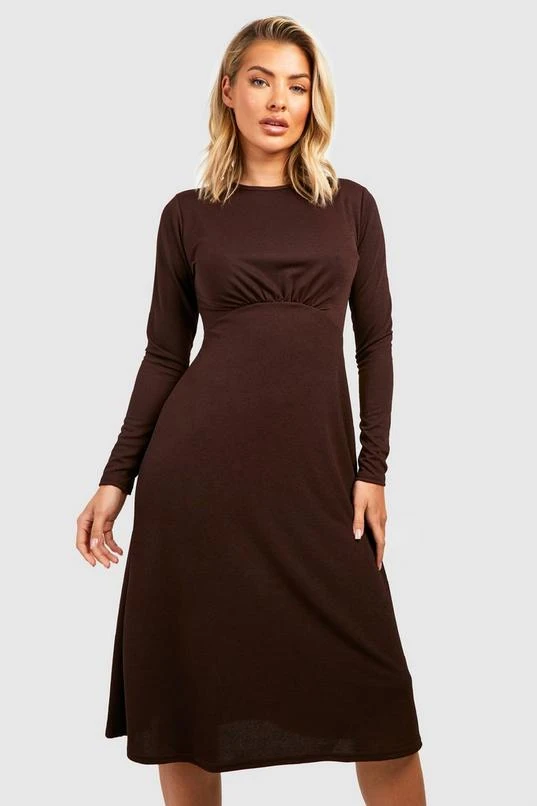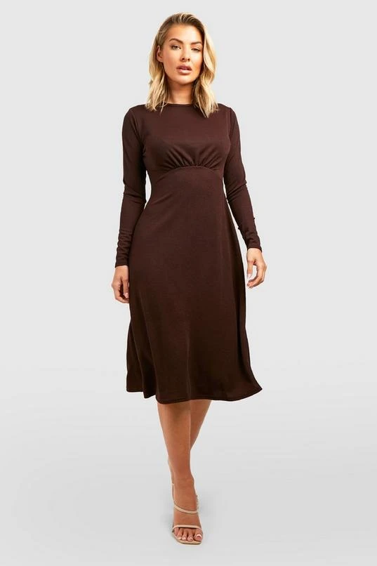 BOOHOO Long Sleeve Round Neck Midi Skater Dress