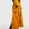 Get cozy this season in this wool coat, sporting a button-up front and shallow pockets; this piece is perfect for layering in colder months. The oversized collars and wide neck opening of this wool look coat are flattering on all bust sizes and can be worn for any occasion. Add sweatpants and a tank top for quickly running errands on cold days or mom jeans and a racerback bodysuit when you’re heading out for food with friends. This women’s wool coat will always have your back.