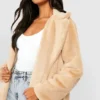 Feel sexy this season in this faux fur coat, made to look and feel as luxurious as animal fur without any animals harmed. This faux fur jacket is warm, cozy, and so on-trend, guaranteed to have you turning heads all season long. Whether you’re rocking your fave skinny jeans or a statement mini dress, this fur jacket has you covered (literally!). Wrap up snug with your faux fur fit, a chunky scarf, and a matching beanie for an outdo that wows.