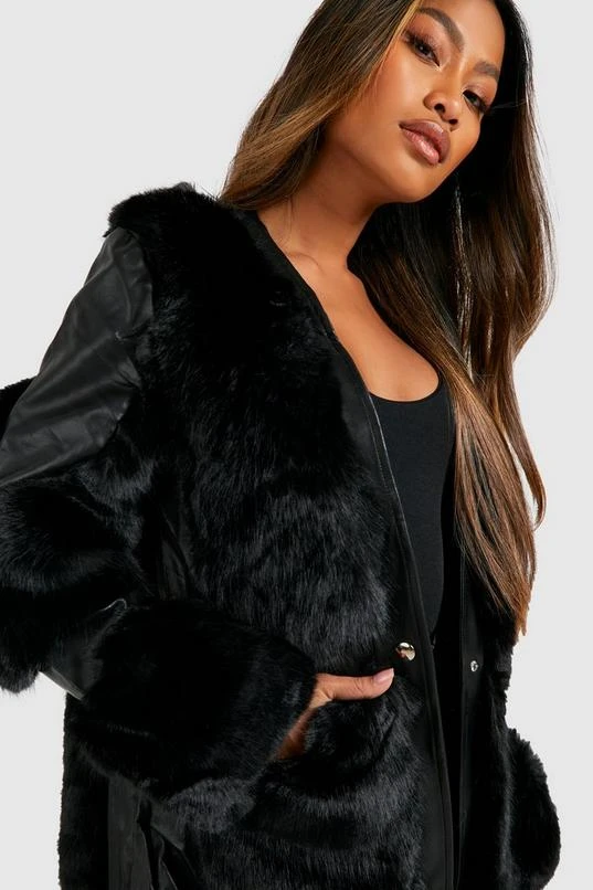 BOOHOO Luxe Faux Fur Paneled Jacket