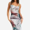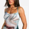 BOOHOO Marble Cowl Neck Crinkle Maxi Dress